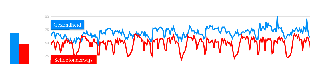 De gezondheidssector is één van de snelst groeiende sectoren. In de afgelopen 5 jaar hebben we gemerkt dat de internetgebruikers in hun browser vaker naar elementen zoeken in verband met gezondheid dan met onderwijs.